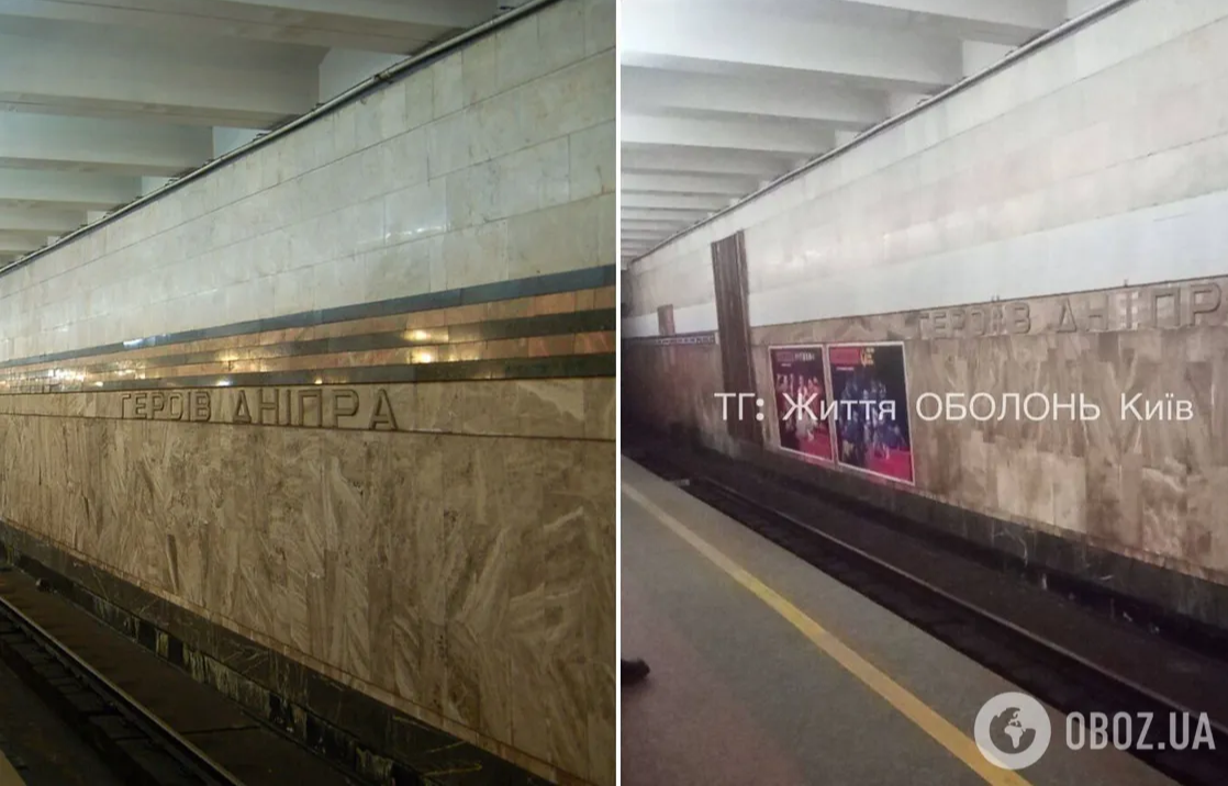 У Києві на станції метрополітену "Героїв Дніпра" нарешті позбулися георгіївської стрічки, яка була розміщена на стіні вздовж усього перону. Працівники метрополітену зафарбували її.