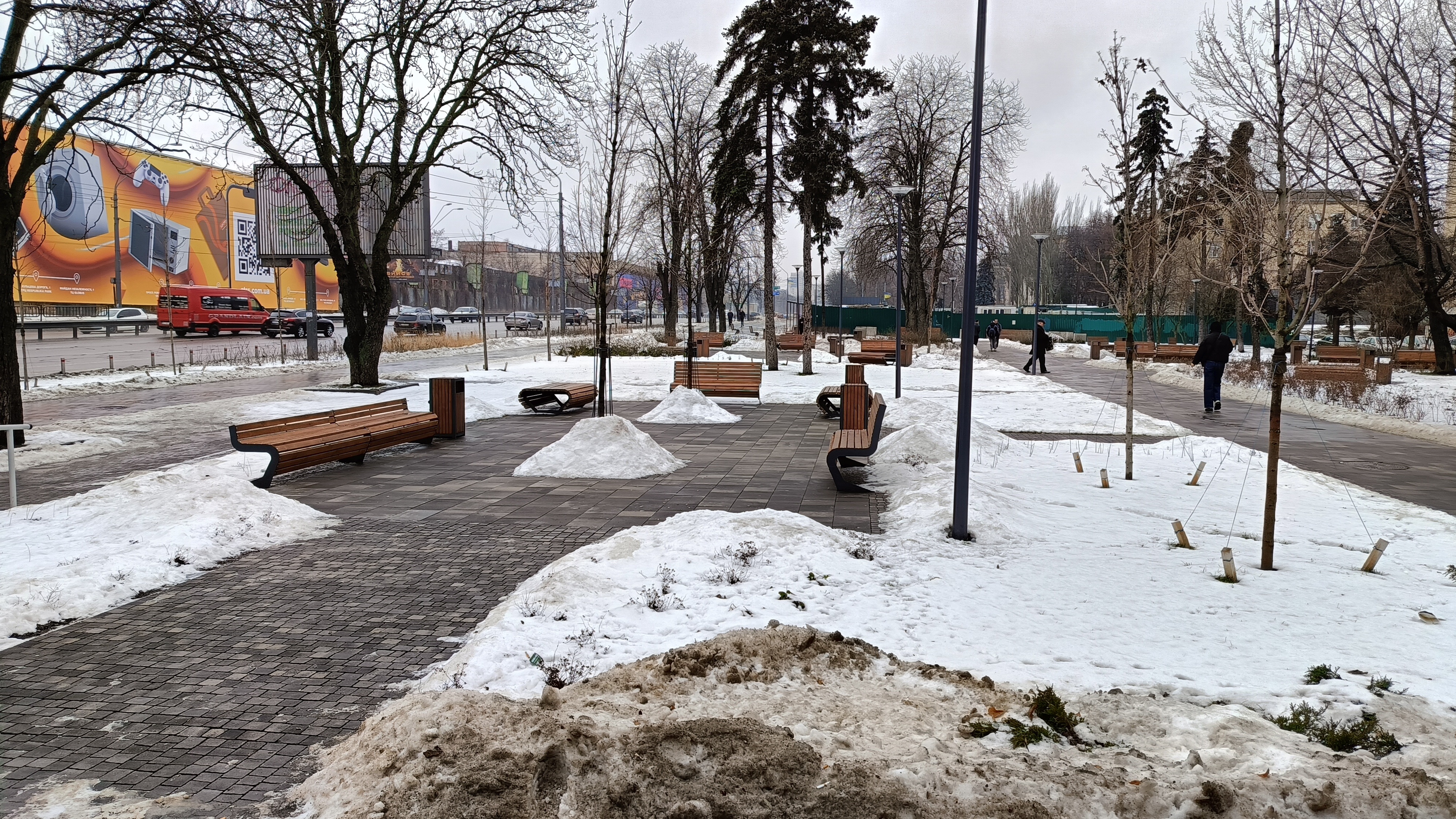 Сквер поряд наземним вестибюлем станції метро. Раніше на цьому місці були мафи