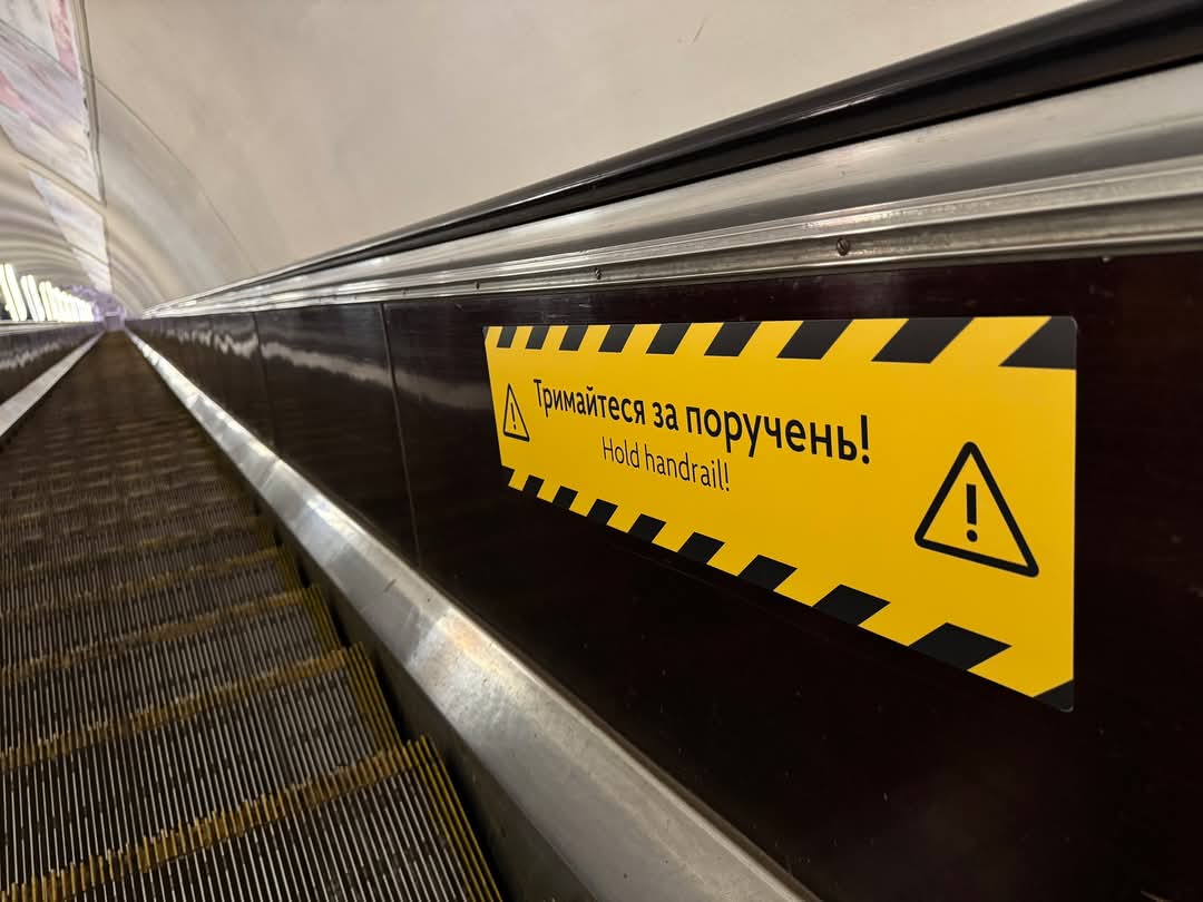 У київському метрополітені тестують нові інформаційні покажчики для підвищення безпеки пасажирів на ескалаторах