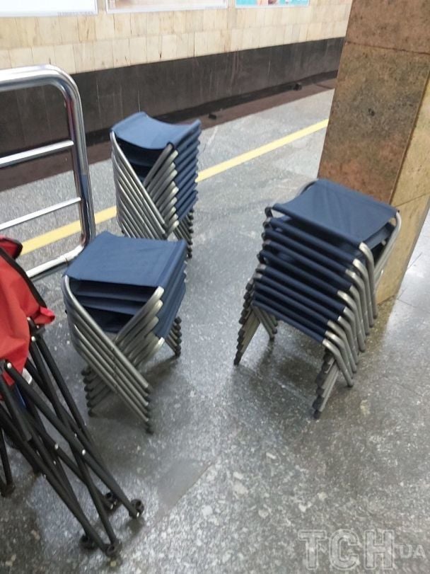 Зі станцій метро Києва почали зникати складальні стільчики, якими благодійники забезпечили столичну підземку для більш комфортнішого перебування пасажирів під час повітряних тривог.