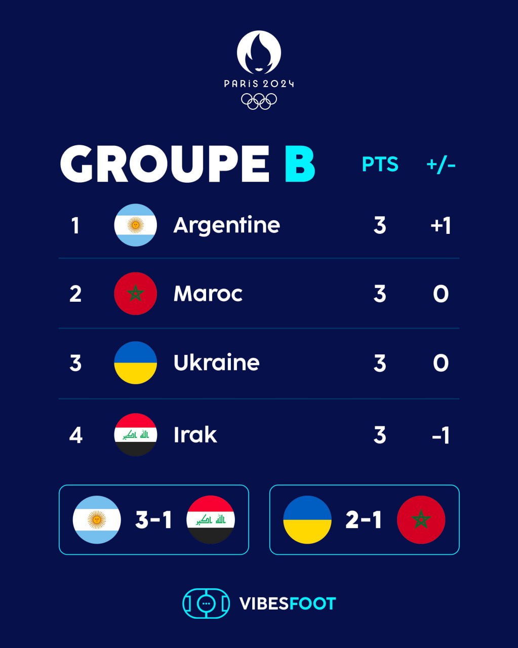 Група B на футбольній Олімпіаді після двох турів.