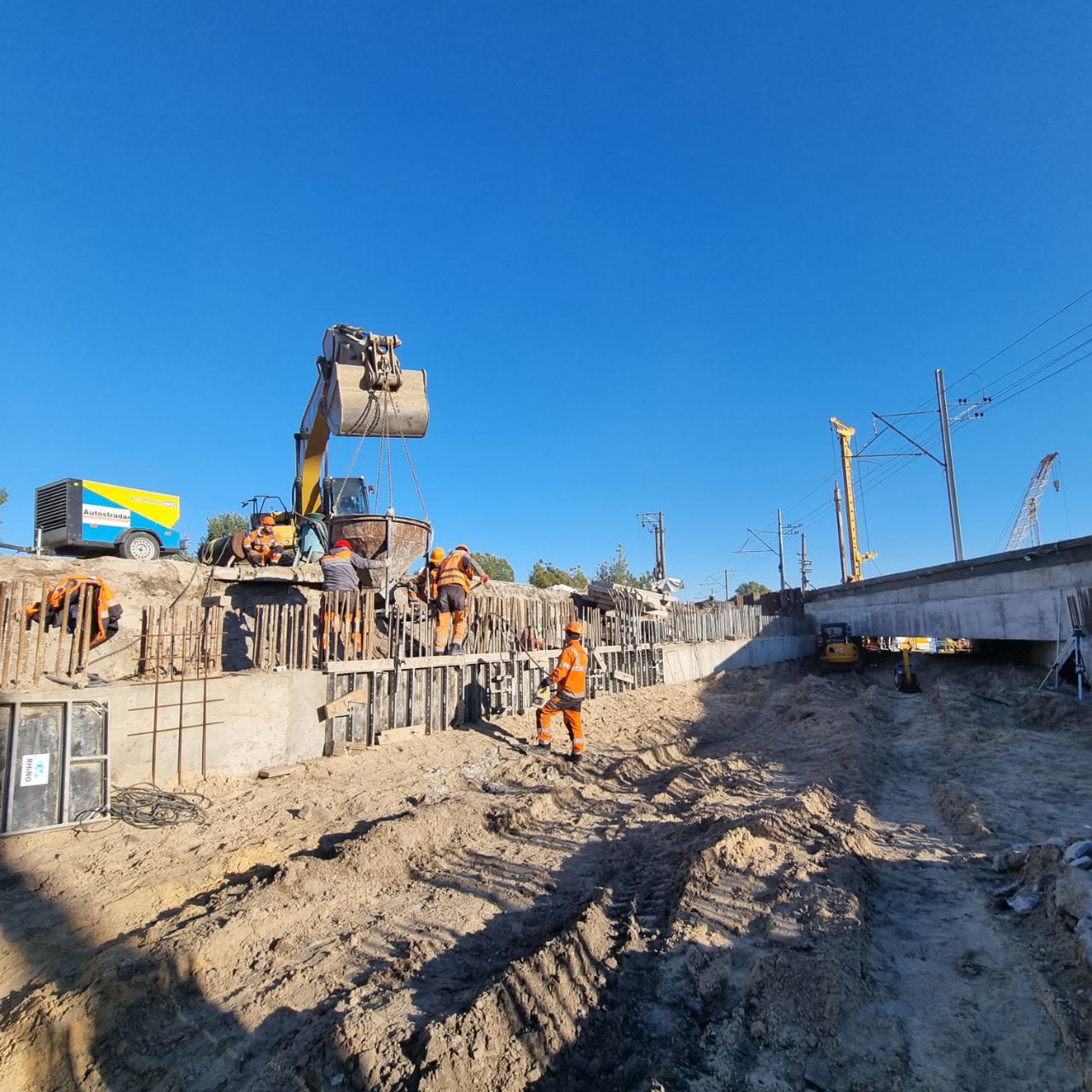 Роботи виконують цілодобово за погодженням із Київською міською військовою адміністрацією з урахуванням умов воєнного стану та у співпраці з АТ «Укрзалізниця», щоб не зупиняти рух залізничного транспорту, який на сьогодні має стратегічне значення. Внаслідок цього, виконання будівельних робіт під час діючих перевезень АТ «Укрзалізниця» є проблематичним і потребує більше часу.