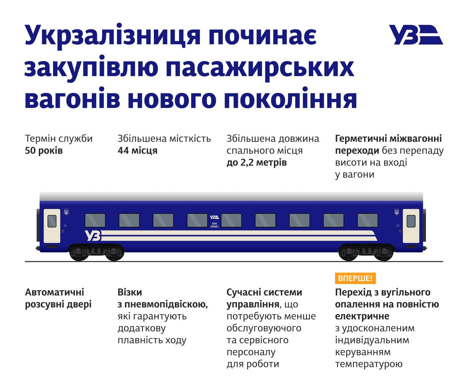 Партія з 5 нових вагонів із сучасними системами управління потребуватиме меншої кількості обслуговуючого персоналу, матиме практично на 80% більший термін експлуатації та вміщуватиме більше пасажирів - до 44 в одному купейному вагоні.