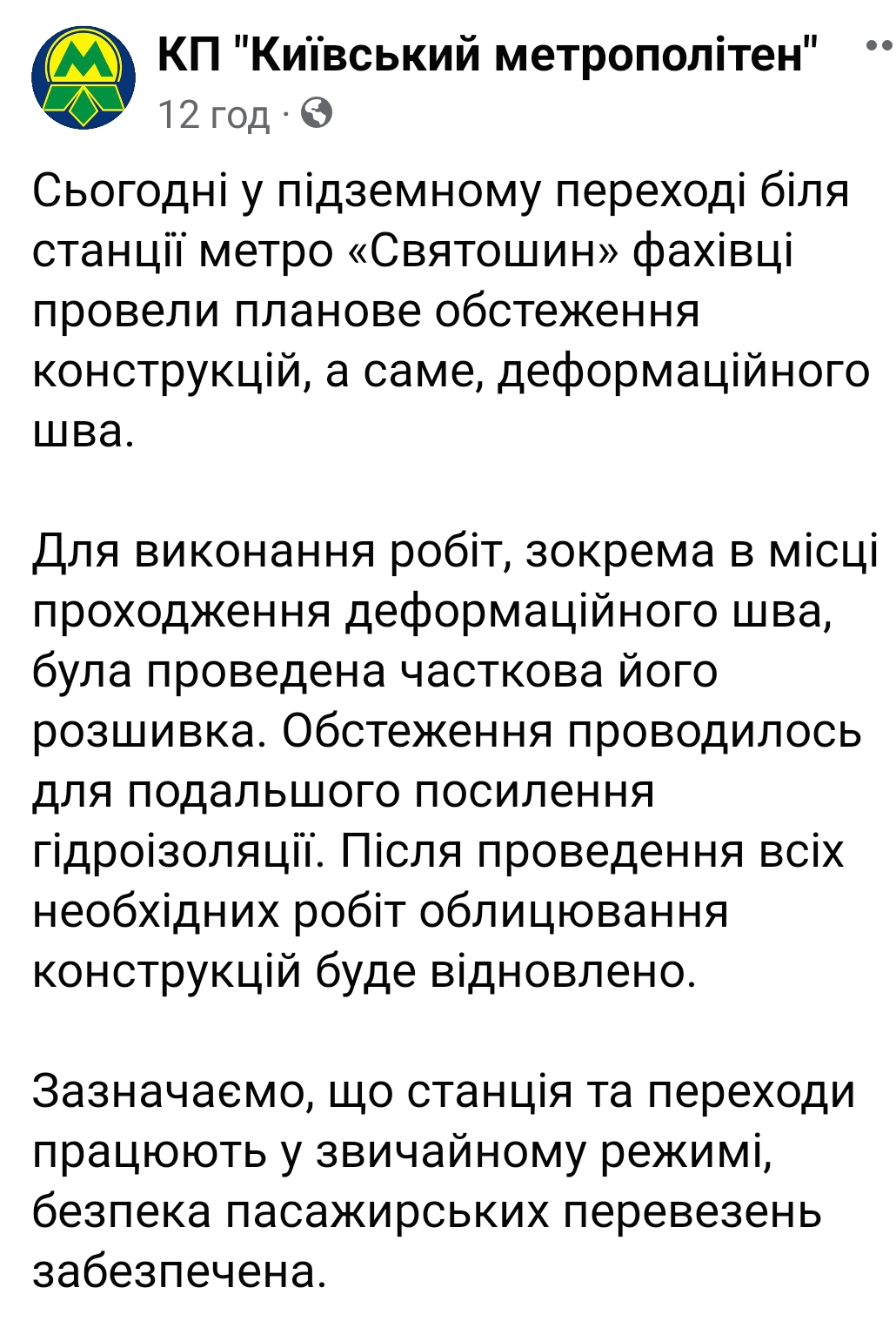 Скрін зі сторінки КП КМ в ФБ