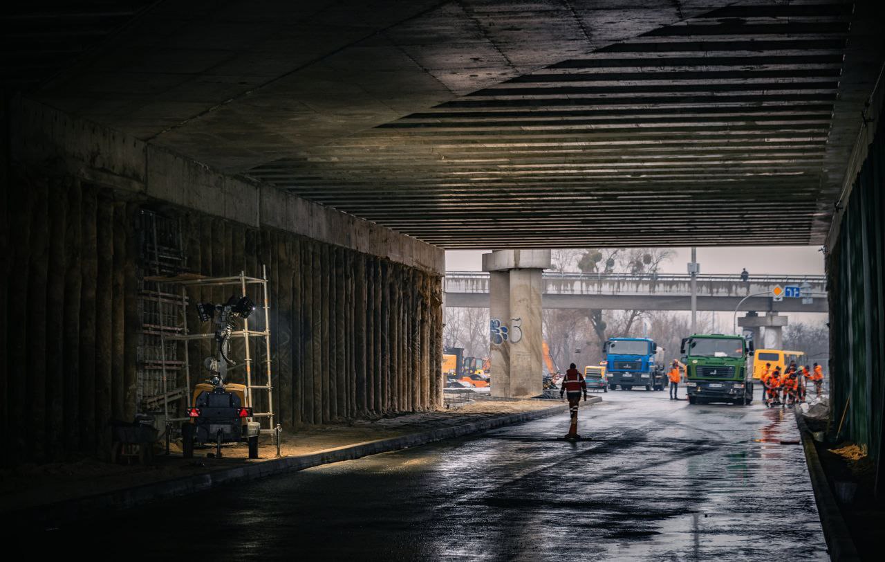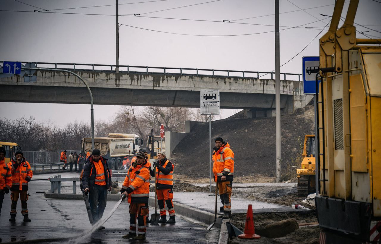 Тротуаров нет ни в тоннеле, ни вдоль временной дороги на Русановских садах, к лестнице от остановки наверх к трамваю тоже есть вопросы, удивлюсь если до завтра её успеют сделать. Начальство Автострады было на месте. На самом мосту видел снегоуборочную технику. Безимянной дорогой с Воскресенских садов до проспекта Шухевича активно сегодня занимались.