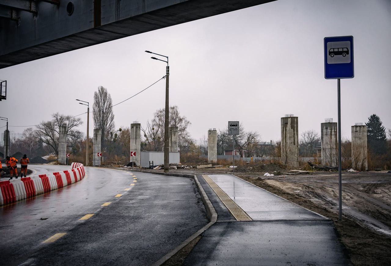 Тротуаров нет ни в тоннеле, ни вдоль временной дороги на Русановских садах, к лестнице от остановки наверх к трамваю тоже есть вопросы, удивлюсь если до завтра её успеют сделать.