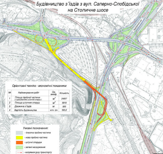 Проєктні та вишукувальні робіт по об’єкту: «Реконструкція транспортного вузла на правобережних підходах до Південного мосту зі з’їздами з вул. Саперно-Слобідської на Столичне шосе в Голосіївському районі м. Києва».