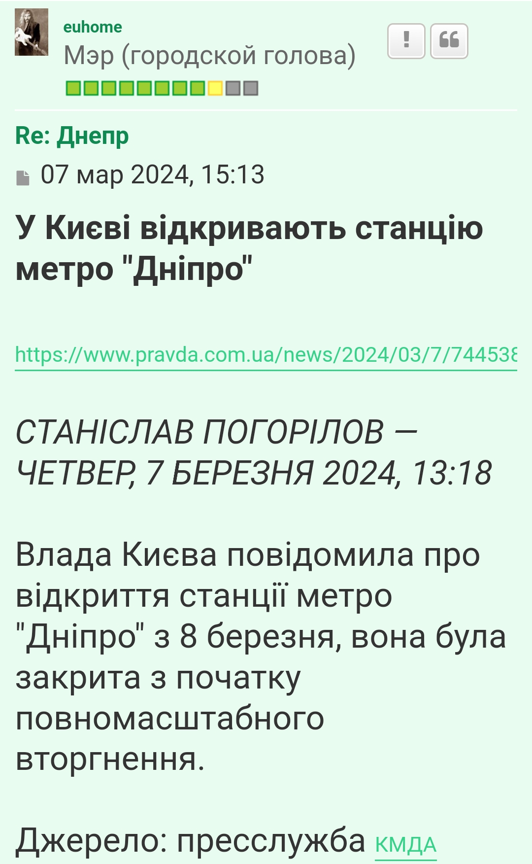 Станцію метро "Дніпро" відкрили 8 березня 2024 р.