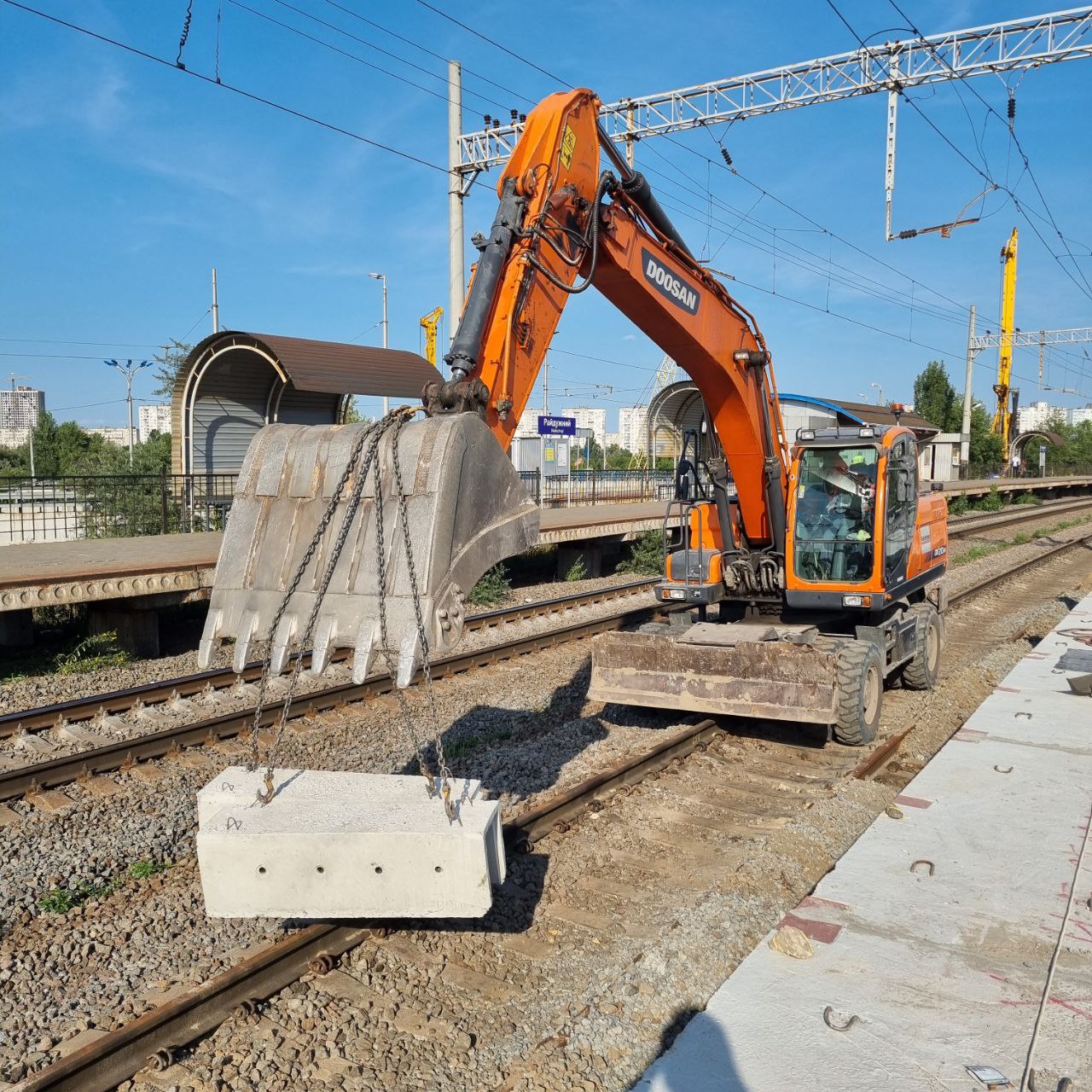 На новой платформе о.п. Радужный ФЭМ укладывать закончили, навесы в количестве 4 шт. тоже готовы (вчера утром были только каркасы). О контактной сети написали в параллельной теме, с виду готовый путь, который был разобран над стройкой, вчера видел уже. Ждём пока направят движение на соседний путь, к новой платформе.
