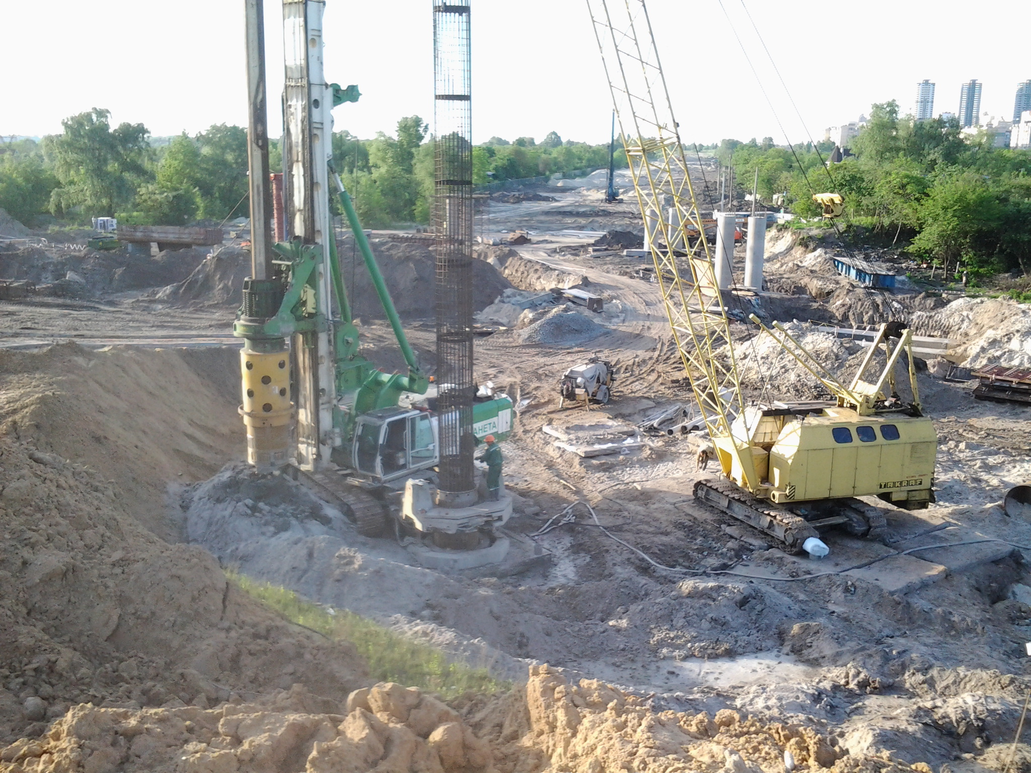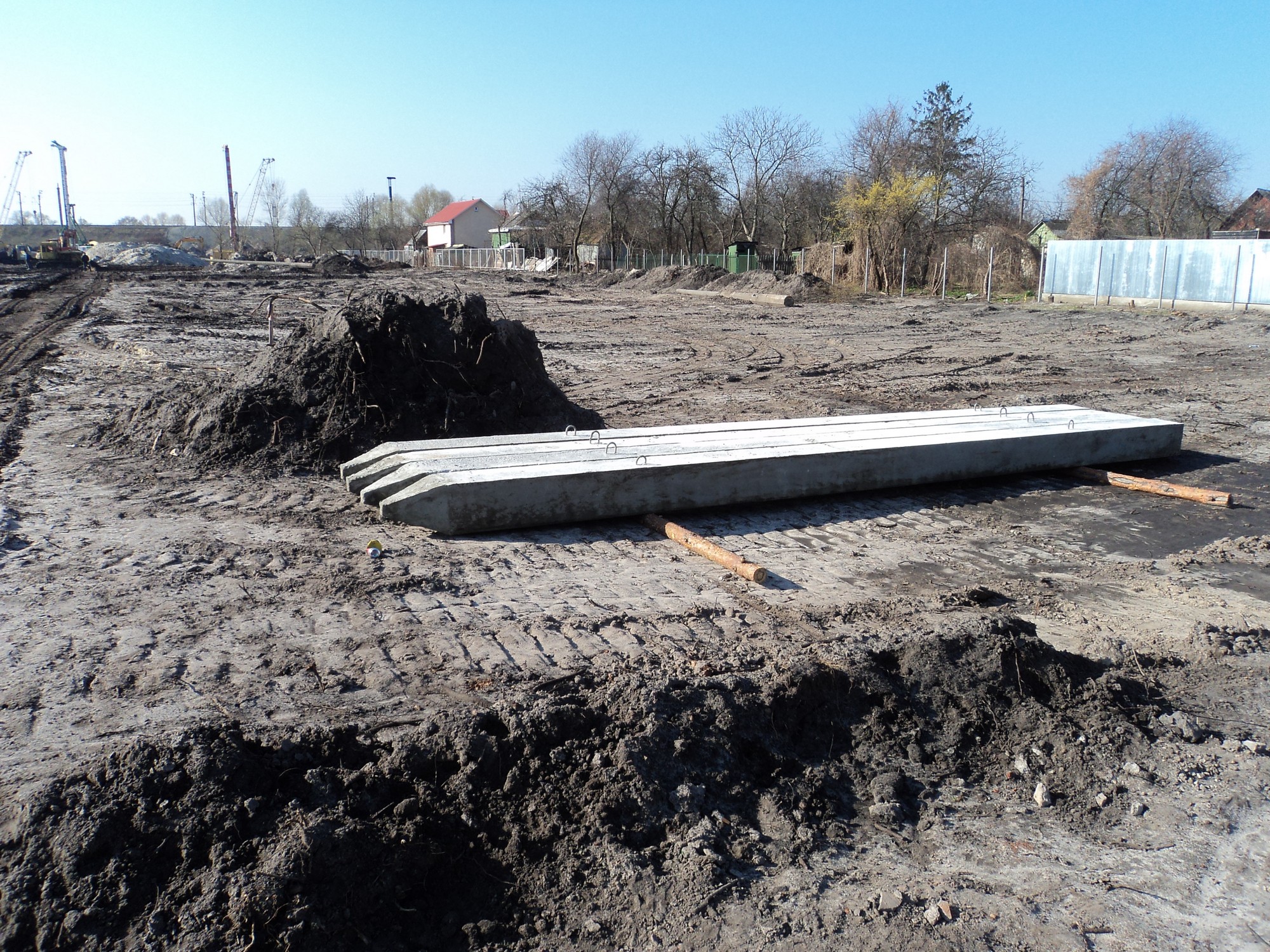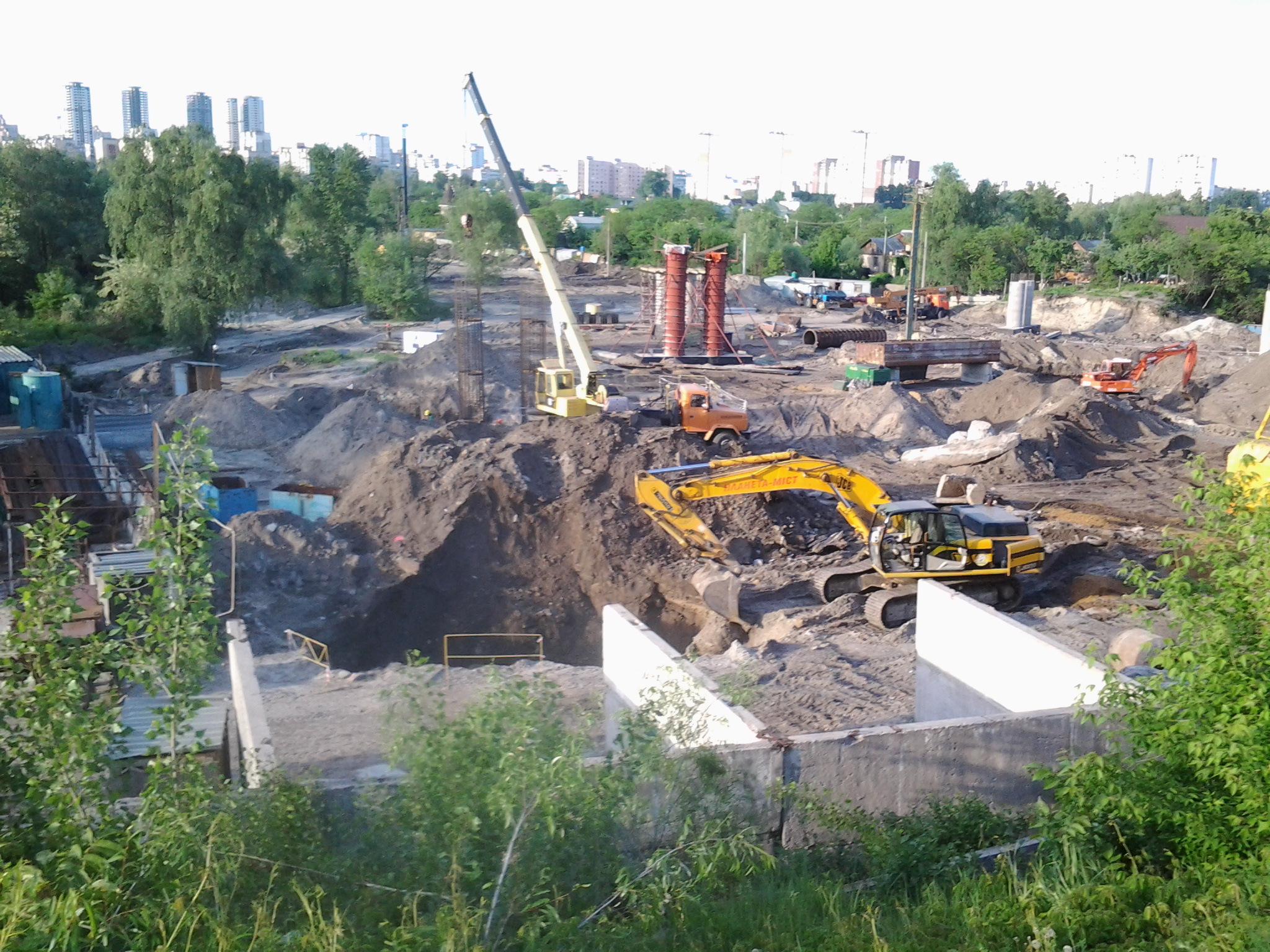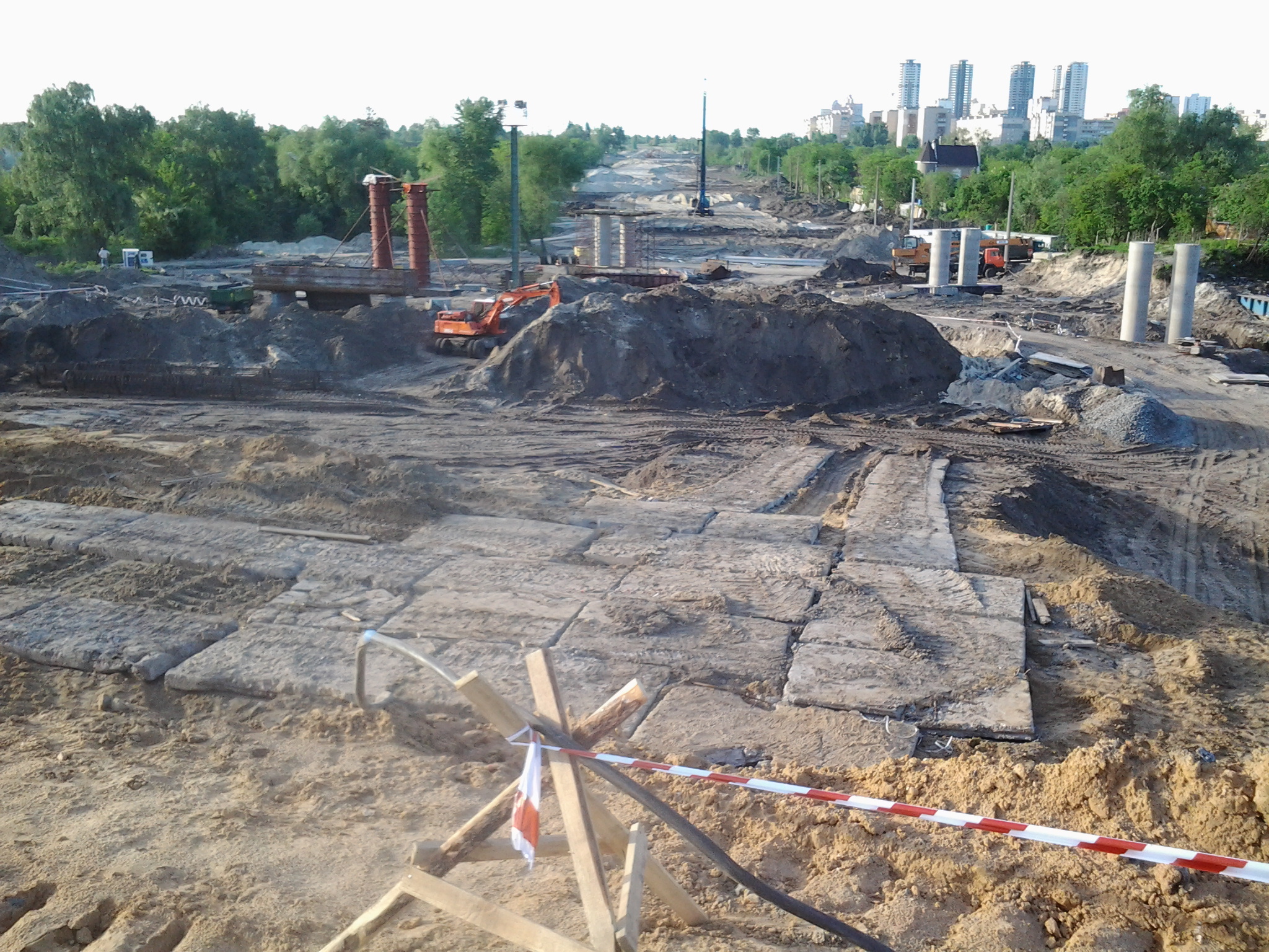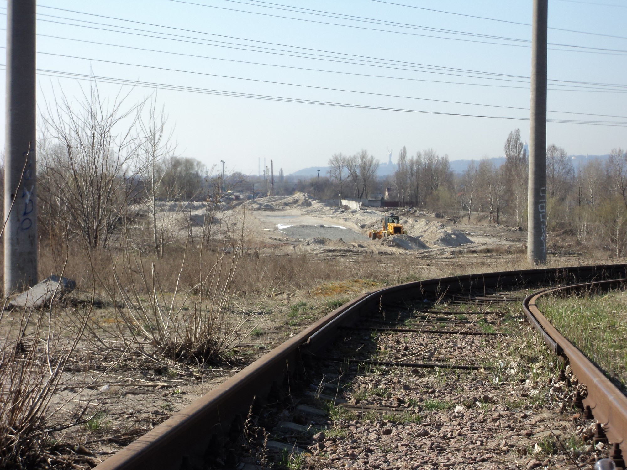 Трамвай пройде під естакадою між цими опорами і далі під залізницею через прокол.