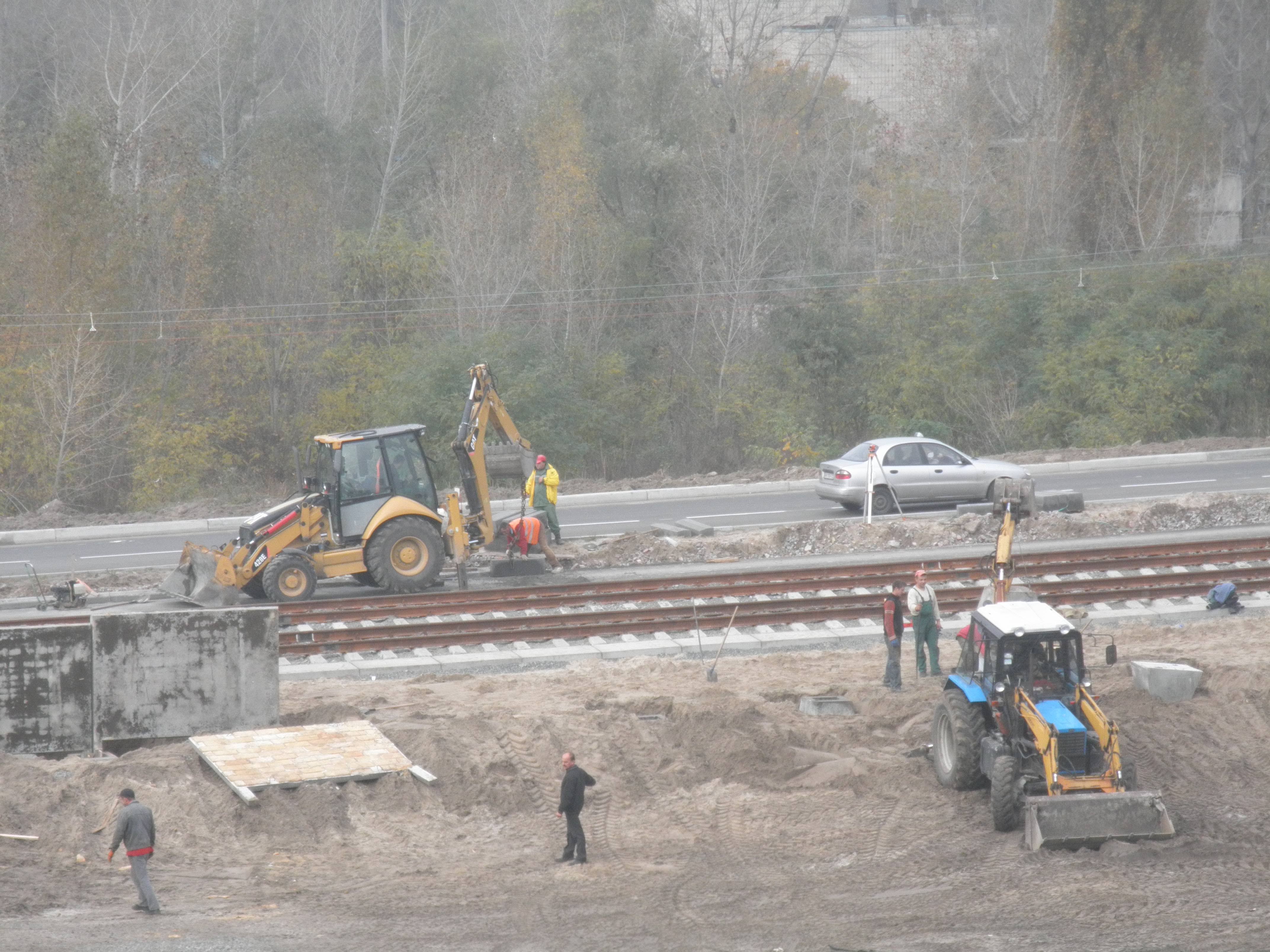 Ось світлини будівництва подовження трамваю з Бальзака та розворотного кола з квітня 2012 року. Якщо робити прокол під залізницею, то треба буде демонтувати естакаду, а лінію трамваю спрямовувати в бік: