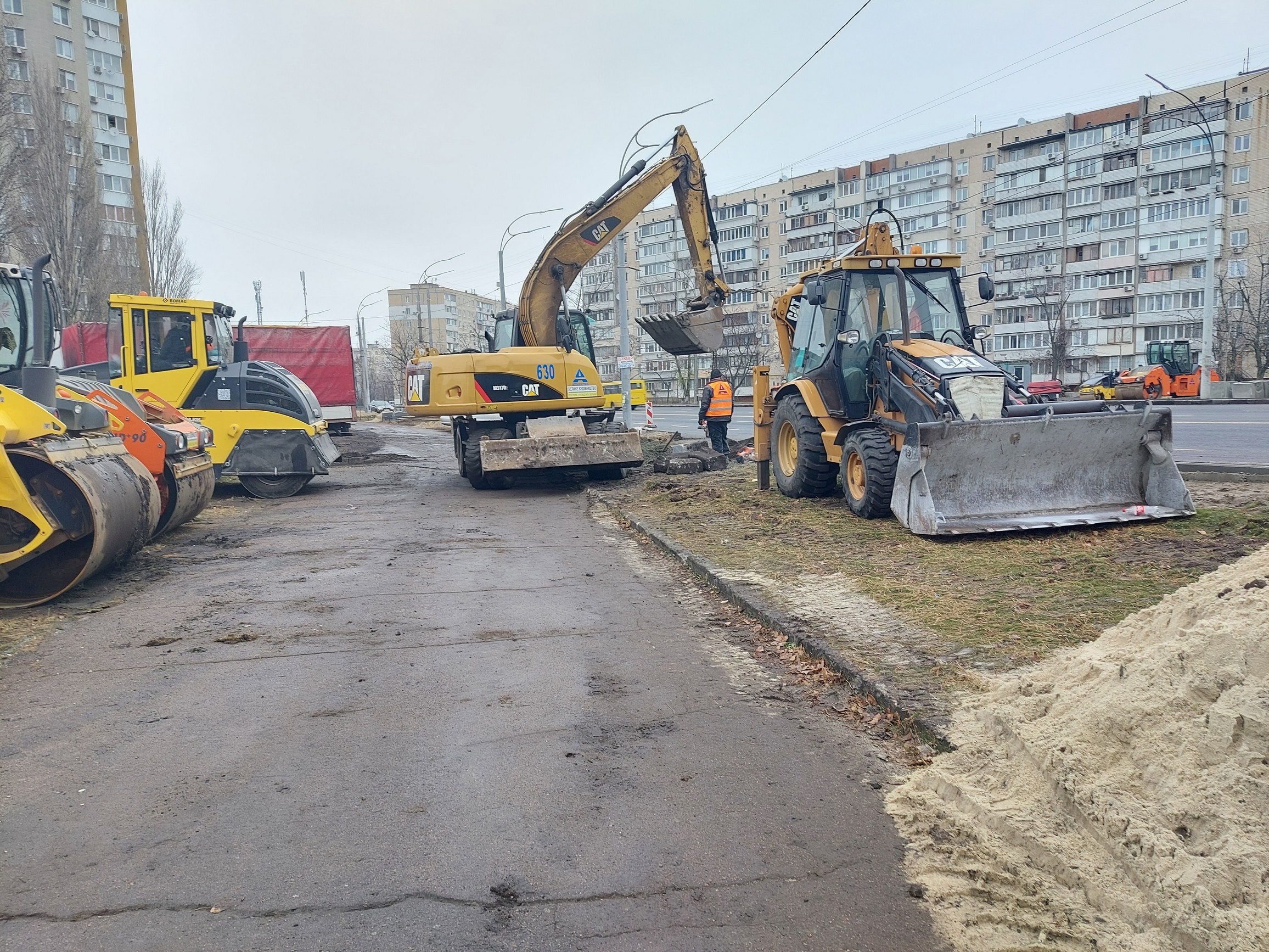 Начали асфальтировать от круга Героев Днепра/Героев Сталинграда