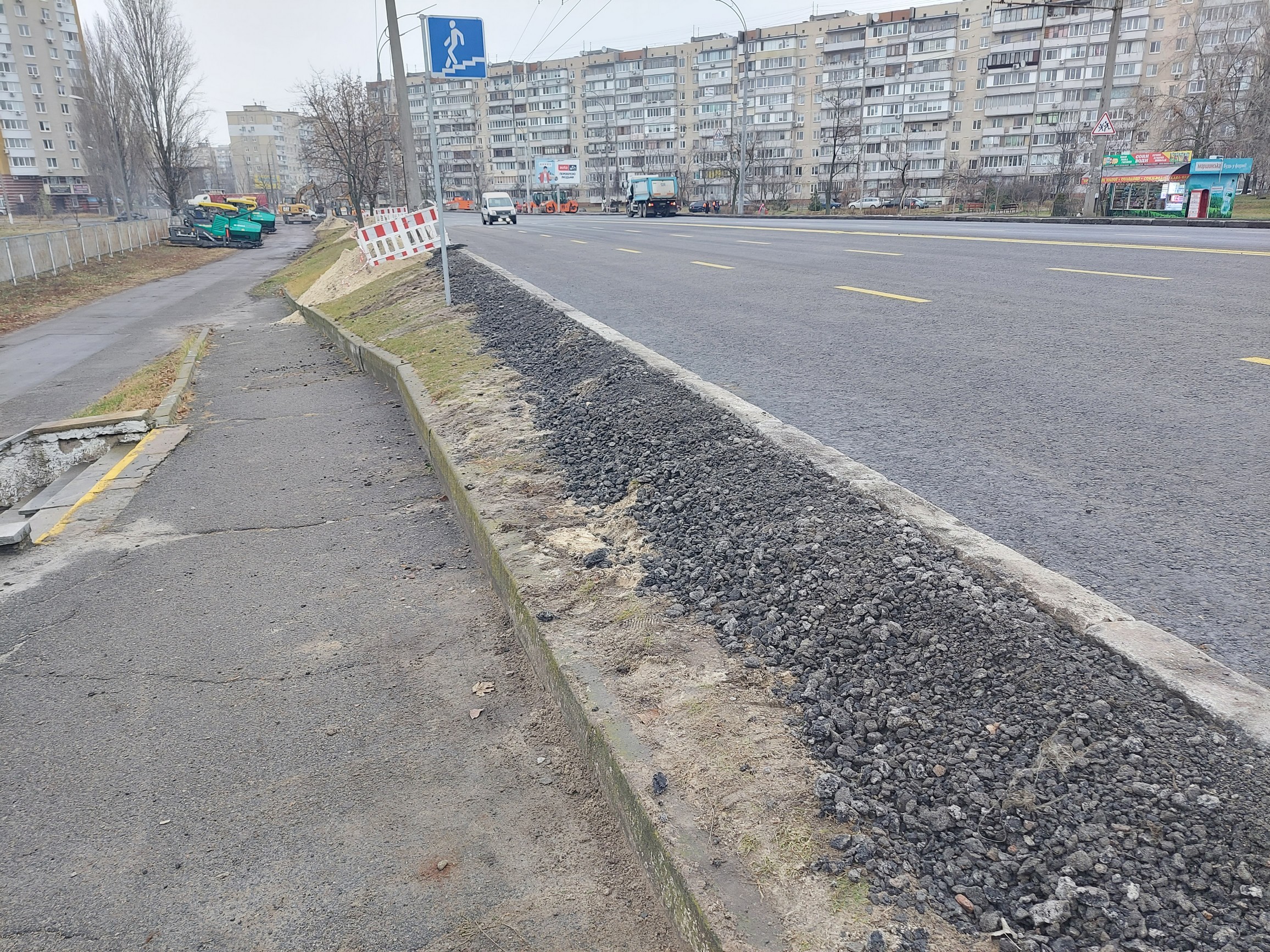 Активно убирают старую бровку, фрезеруют асфальт от круга Сталинграда/Героев Днепра до круга на Тимошенко