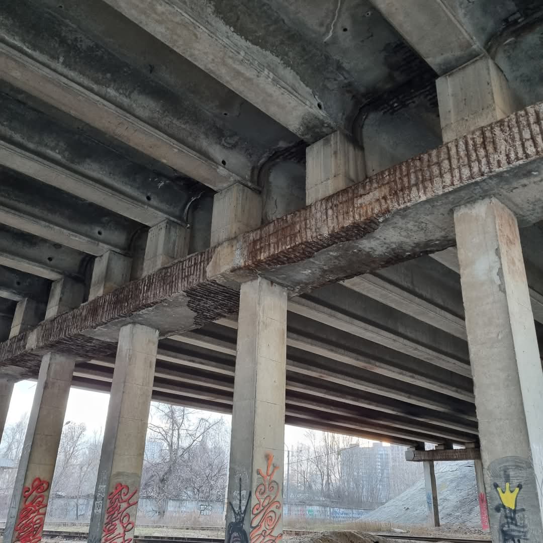 Роботи на шляхопроводі є нагальними, адже через пошкоджені конструкції мостового полотна волога проникає на прогонові будови та опори споруди, через що руйнуються залізобетонні конструкції – є корозія арматури, тріщини та відшарування бетону.